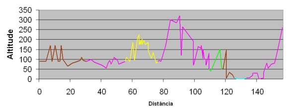 Distância Total (mínima) da Prova Distância Total (máxima) da Prova Distância Pedestre (aprox.) Distância BTT (aprox.) Distância Canoagem (aprox.) |